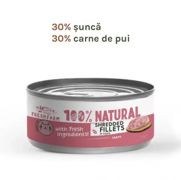 FRESH FARM Conserva pentru pisici Fresh Farm Schredded Fillets cu sunca 70 gr