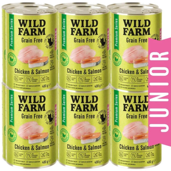 Wild Farm Premium Grain Free Chicken and Salmon Junior 12x400g - hrană fără cereale pentru pisoi
